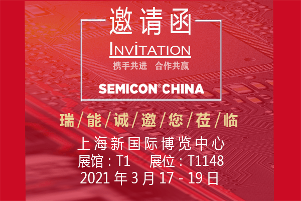 2021 上海國際半導體展會Semicon China 将于2021年3月17日-3月19日在上海新國際博覽中心舉行,歡迎各界新老朋友莅臨我司展位T1148 洽談。